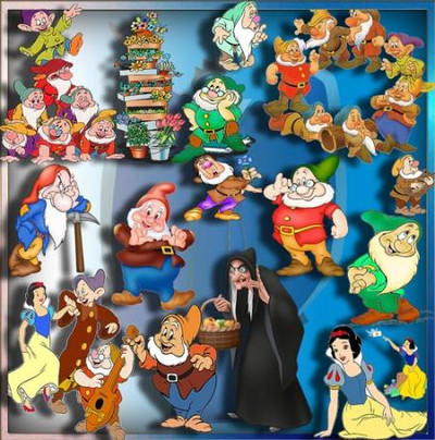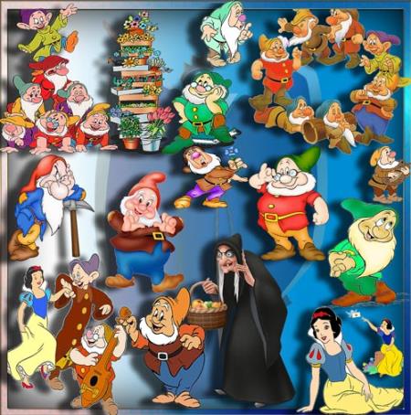 Прозрачные клипарты для фотошопа - Белоснежка и 7 гномов